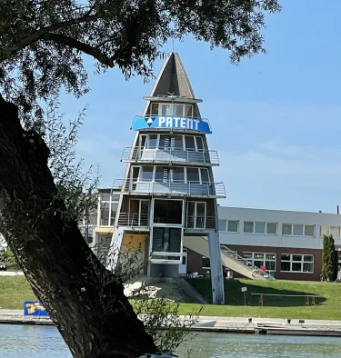 Győr egyik legnépszerűbb szabadstrandjáról mindenki láthatja a Patent logót, amely a GYVSE Audi céltoronyra került fel....