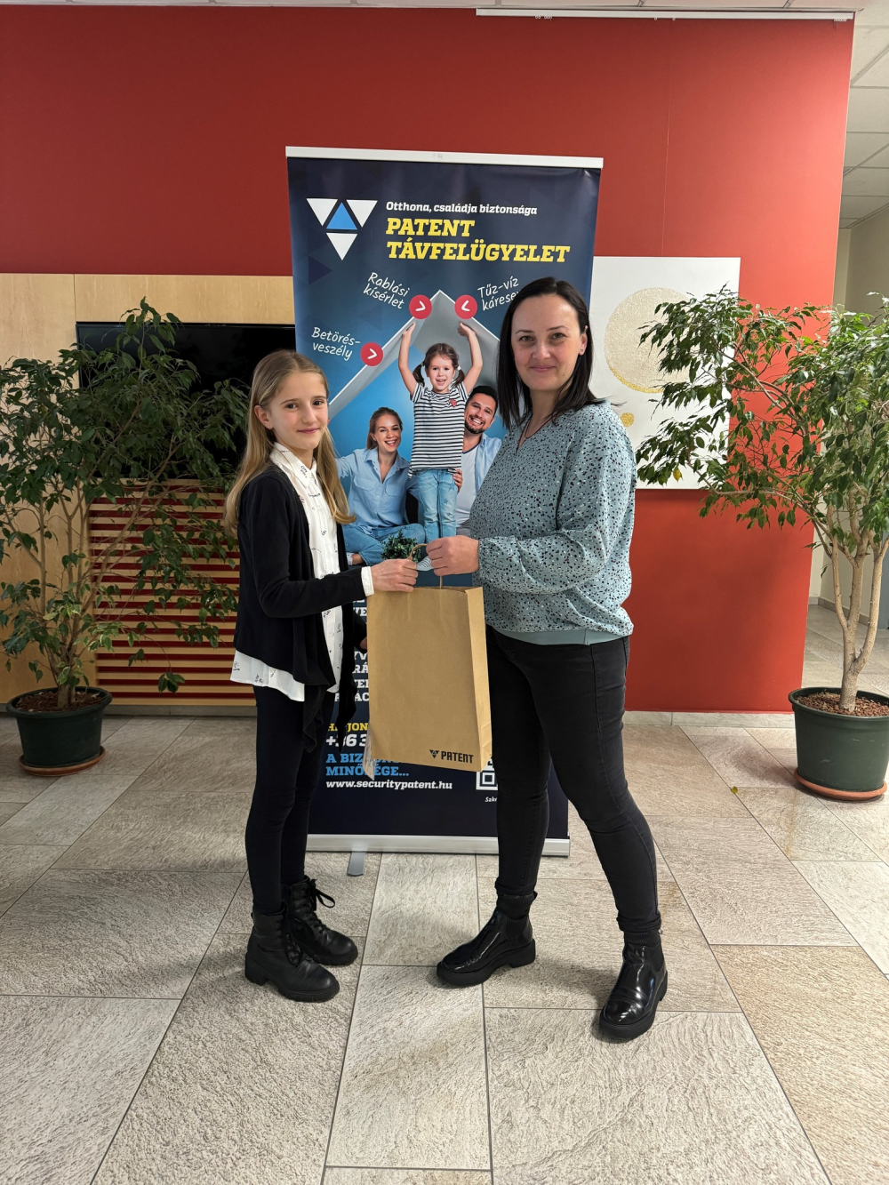 Mihácsi Cecília a Bartók Béla Ének-zenei Általános Iskola 4. osztályos tanulója fantasztikus rajzával nyerte el a fődíjat! Karácsonyi Sulyok Vera, a Patent ügyfélszolgálati igazgatója adta át a jól megérdemelt nyereményt.